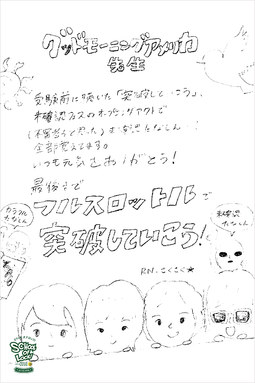 いつものように恋愛相談にのってくれたり、生徒の言葉を受け止めてくれたり、たなしん先生の「ファイヤー!」で元気を届けてくれたり。。。