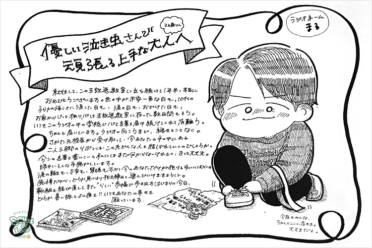だから、今度は僕がみんなに言いたい。“大丈夫だよ”って、“君ならできる”“1人じゃない”! ラジオの奥から強く叫びたい。僕たちの周りに生徒がいるんじゃなくて、みんなの創る円の中に僕たちがいる。だから、ここで一緒にみんなと大きな円を創りたい。誰かが悲しんだ時、悩んだ時、立ち止まってしまった時、一緒に話を聞いて隣にいたい。誰かが嬉しいこと、楽しいこと、叫びたいことがある時は、隣で一緒に喜びたい。ここは、みんなのラジオの中の学校。これから先、校長としてみんなと同じ時間を歩ませて欲しい。よろしく頼む!」