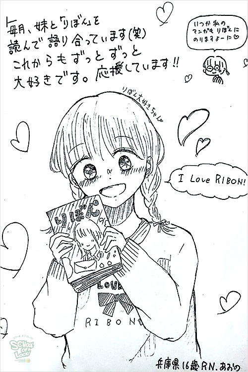りぼん毎月読んでます!いつも面白いまんがとかわいくて実用性のある付録ありがとうございます。たぶん私が学校で使ってるポーチとか小さい入れ物は9割くらいがりぼんの付録です!そして読者ページに送ってもなかなか採用されません、、、、泣