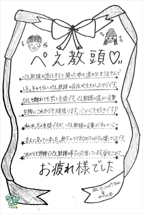 「自分を信じて、自分と心を守ってあげてください」SOLぺえ教頭 最後のメッセージ