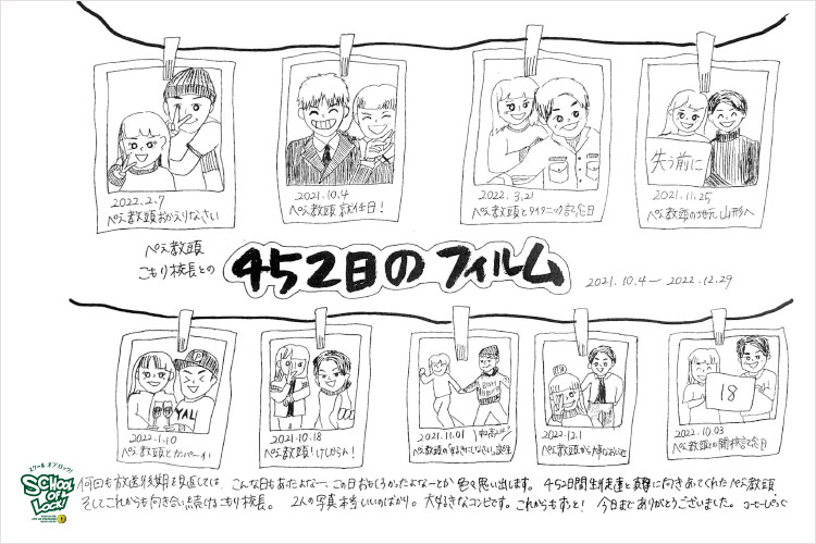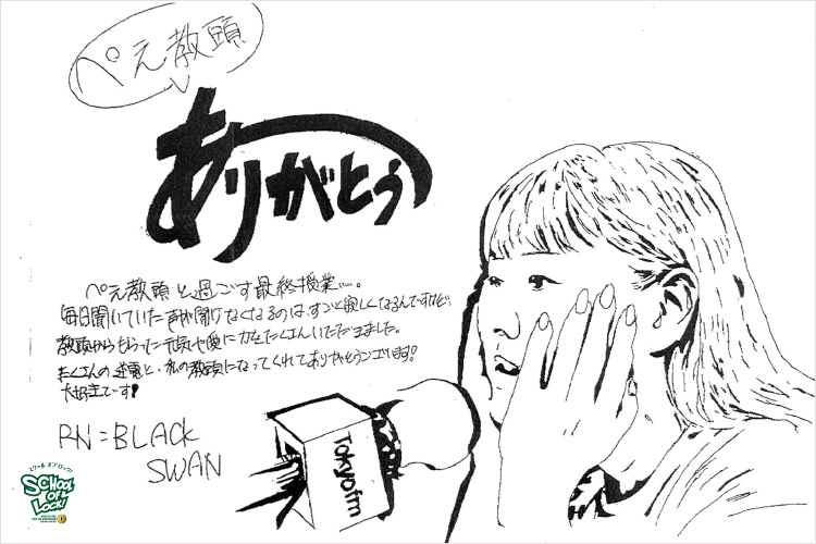 ぺえ教頭「家を出る前までは、ものすごく感情が溢れて涙が止まらなかったのね。もう食器を洗ってるだけでも涙が出てきて、洗濯物をまわしただけで涙が出てきて、見える景色に全て感情が動いてしまって、コンビニのケーキ見て泣いたもんね(笑) 何に私は感化されて涙を流してるか分からない状態で。そうか今日で終わるのかっていう思いを抱えて、ここに来たんだけど、ここに来るとやっぱりどうしても笑顔になっちゃうんだよね」
