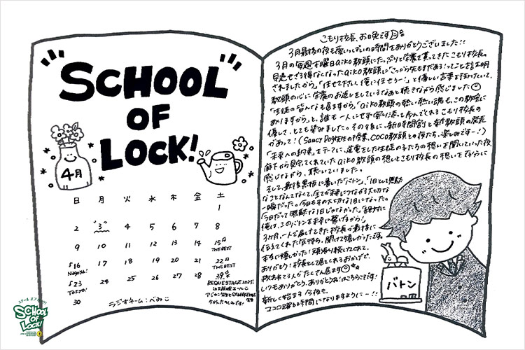 こもり校長「今日から、ラジオの中の学校SCHOOL OF LOCK!は、新学期に突入します。