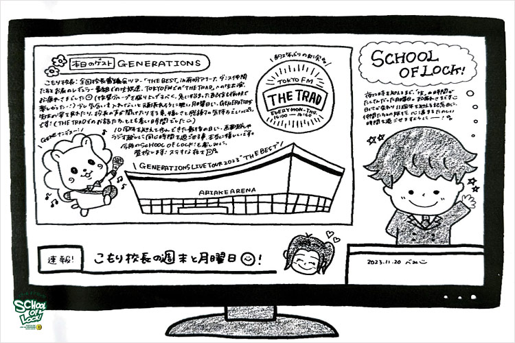 じゃあ今夜も授業を始めて行きましょう。SCHOOL OF LOCK! 今週も開校です」