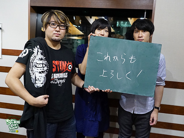 とーやま校長「最初に報を受けた時に、SCHOOL OF LOCK!でもしゃべらせてもらって、ちょっと泣きそうになっちゃったんですよ。何度もここでお会いしてるしね。でも、LIVEの映像とか携帯のニュースとかで3人の顔を見たり言葉を聞いていたら、今おっしゃったように"3人はもう覚悟を決めて進んで行く"っていうのがわかったんです。俺たちはBase Ball Bearが好きだから、そっから先はもういつもと同じように楽しませてもらおうって思いました。たぶん生徒のみんなも同じ気持ちでいると思う」