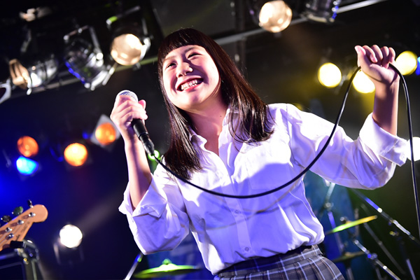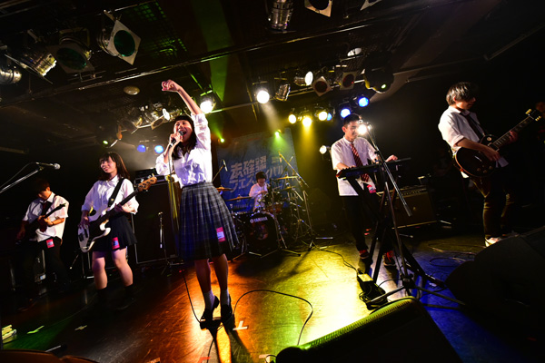 2年前に同じ高校の軽音楽部で一緒だった先輩、後輩で組んでいる(ドラム以外)このバンドは全員、制服姿での登場!