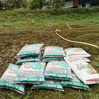 腐葉土10個と堆肥3個 買いました。本当はもっと買えたんですが、調子乗って釣竿と道具を買っちゃいました・・・。