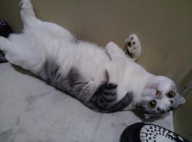 スコティッシュフォールドって言う種類の猫!(耳が折れてて顔が丸いの!)