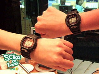 | 校長・教頭が持つ、世界に2つしかないG-SHOCK。左が校長、右がFUJI ROCKいってこんがり焼けた教頭の腕っす。 |