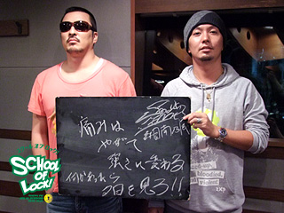 YOUNG FLAG08 生徒限定特別先行電話予約実施中!! そんな今夜は・・・ 10/5(日)東京・新木場STUDIO COASTに出演してくれる! 湘南乃風先生の若旦那先生とSHOCK EYE先生が登場してくれま〜す! 熱いお2人ですから、今日はわが校のスタンダード授業、『掲示板逆電』をやっていくぞー! 悩みや疑問、質問、メッセージなど何でもいいぞ! 湘南乃風先生に聞いてもらえ聞いてもらえ〜! 掲示板逆電で〜〜 夢を掴めっ! |