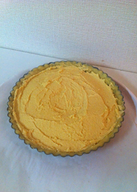 冷蔵庫で休ませておいたタルト生地に【2】を入れてならし、170度のオーブンで30〜35分焼き、粗熱が取れたら型から外しておきます。