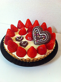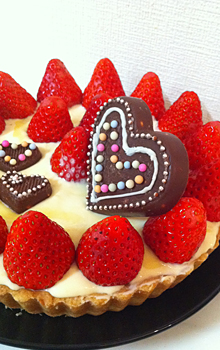 香ばしくいタルトの上に真っ赤なイチゴとハート型のチョコレートを乗せたら、