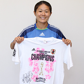 ★ワールドカップ優勝記念グッズである、adidasのTシャツに、澤穂希選手がサインをしてくれたぞ!! |