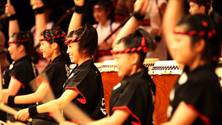 (作曲・指導 地元福井県のOTAIKO座明神座長・上坂優さん) |