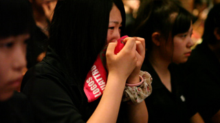 自分達の出番が近づくにつれて、笑顔でいる余裕もなくなっていく。 |
