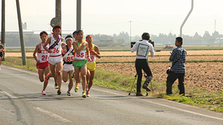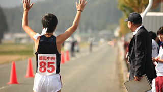 そしてアンカーが待つ最後の中継所。その手前で、盛岡中央高校が、ついに順位を4位に上げた。そしてアンカーにタスキをつなぐ。5位とはたったの10秒差。勝負の行方は、まさに3年生のアンカーに託された。 |