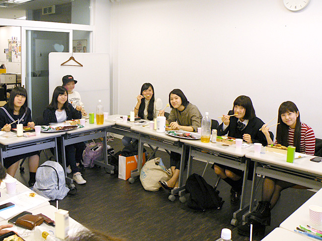 お弁当のおかずを交換したり、写メを撮りあったり、
