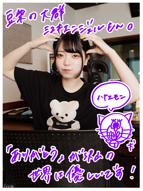 ミユキ「じゃあはいはいはい!嬉しい時のありがとうだったら“嬉ぴえんじぇる”とか?」