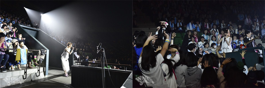 「私も有明コロシアムに来てるんだ。今から、会わない?じゃあ…ステージの上で待ち合わせとか、どう?」