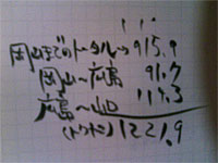 東京(原宿)〜岡山まで915.9キロ 岡山から広島91.7キロ 広島〜山口(徳山) 114.3キロ