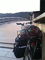 渡りたそうなチャリンコ君と錦帯橋をパチリ。