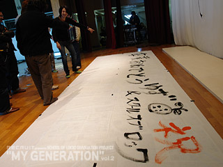 到着してまずは、悠仁先生による、垂れ幕書き。