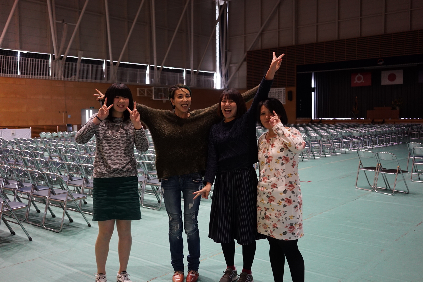 相馬東高校バレー部の OB のみんなと体育館の隅っこでお話をしてきたLOVEちゃん。彼女たちと初めてあったのは2011年。すっかり大人になったみんな。元バレー部キャプテン、東京の大学2年生!将来は英語教師希望、山本遥香ちゃん。看護学校1年生、ナース志望の濱名那実ちゃん。救急救命士の勉強中、専門学生1年生。大原瑞葵ちゃんの3人。とにかく元気な3人(笑)