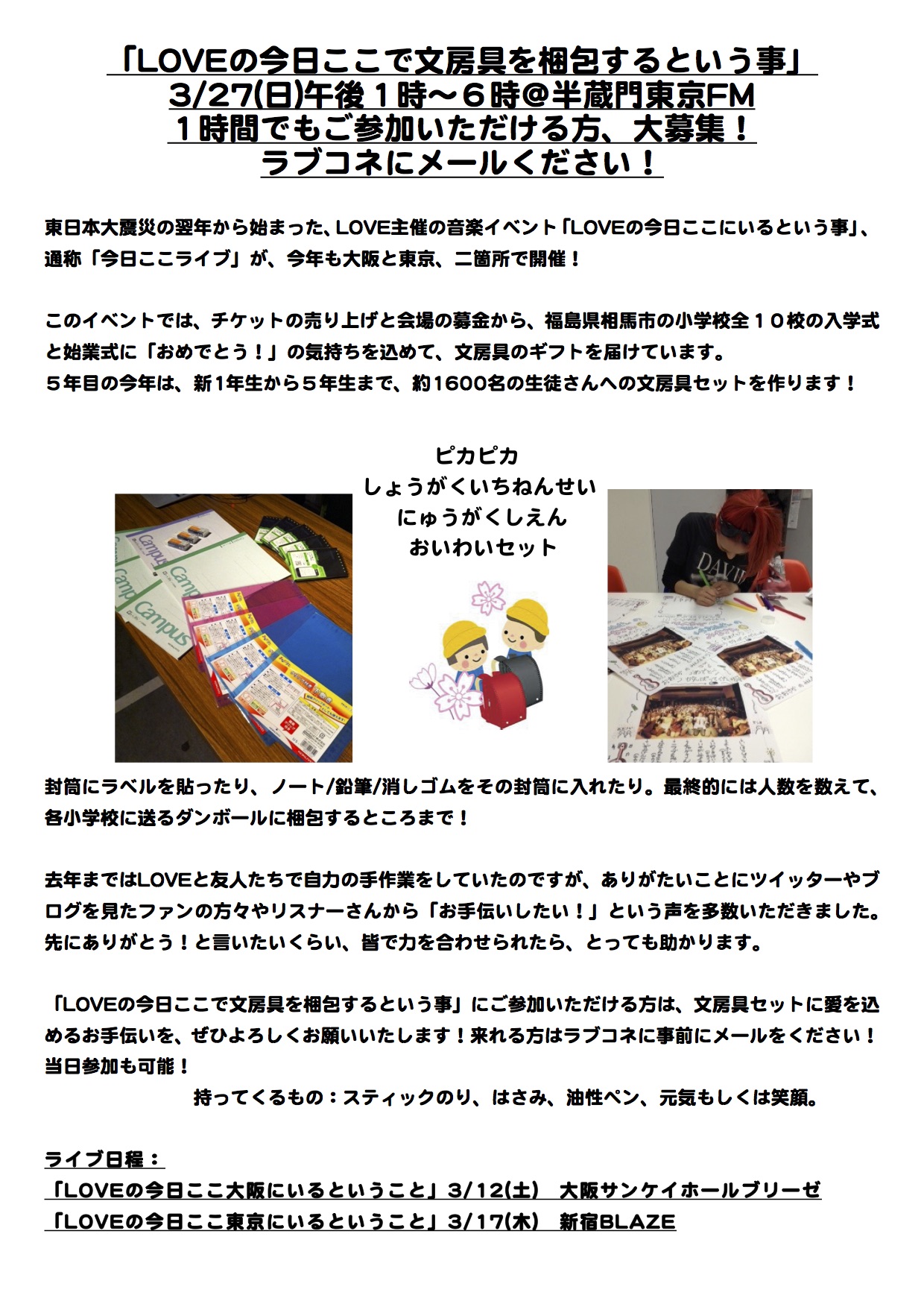 MON.-THU. TOKYO FM 11:30-13:00 FRI. TOKYO FM & FM大阪 11:30-11:55 ON AIR