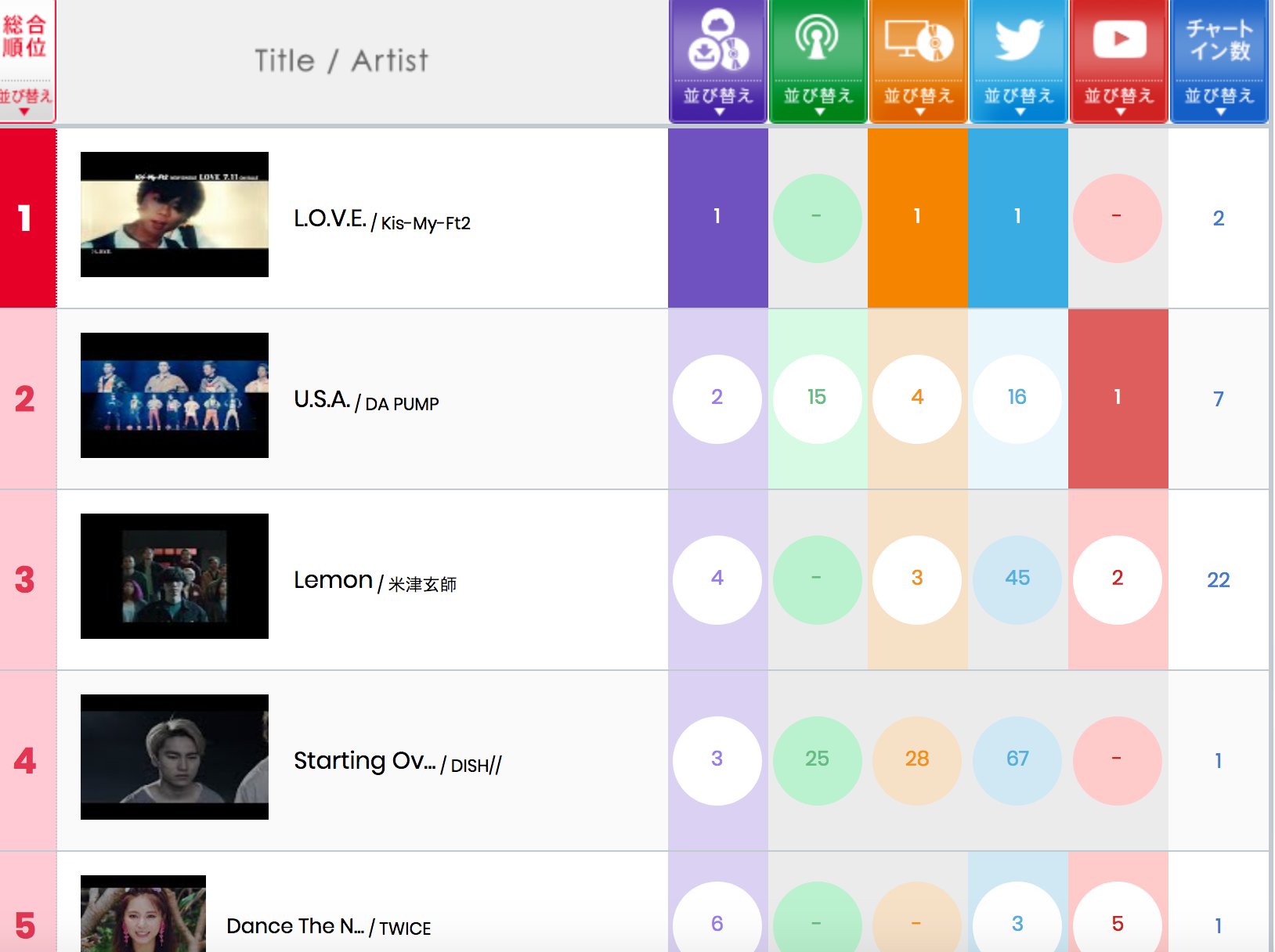 今週は Kis-My-Ft2「L.O.V.E.」が総合首位を獲得!