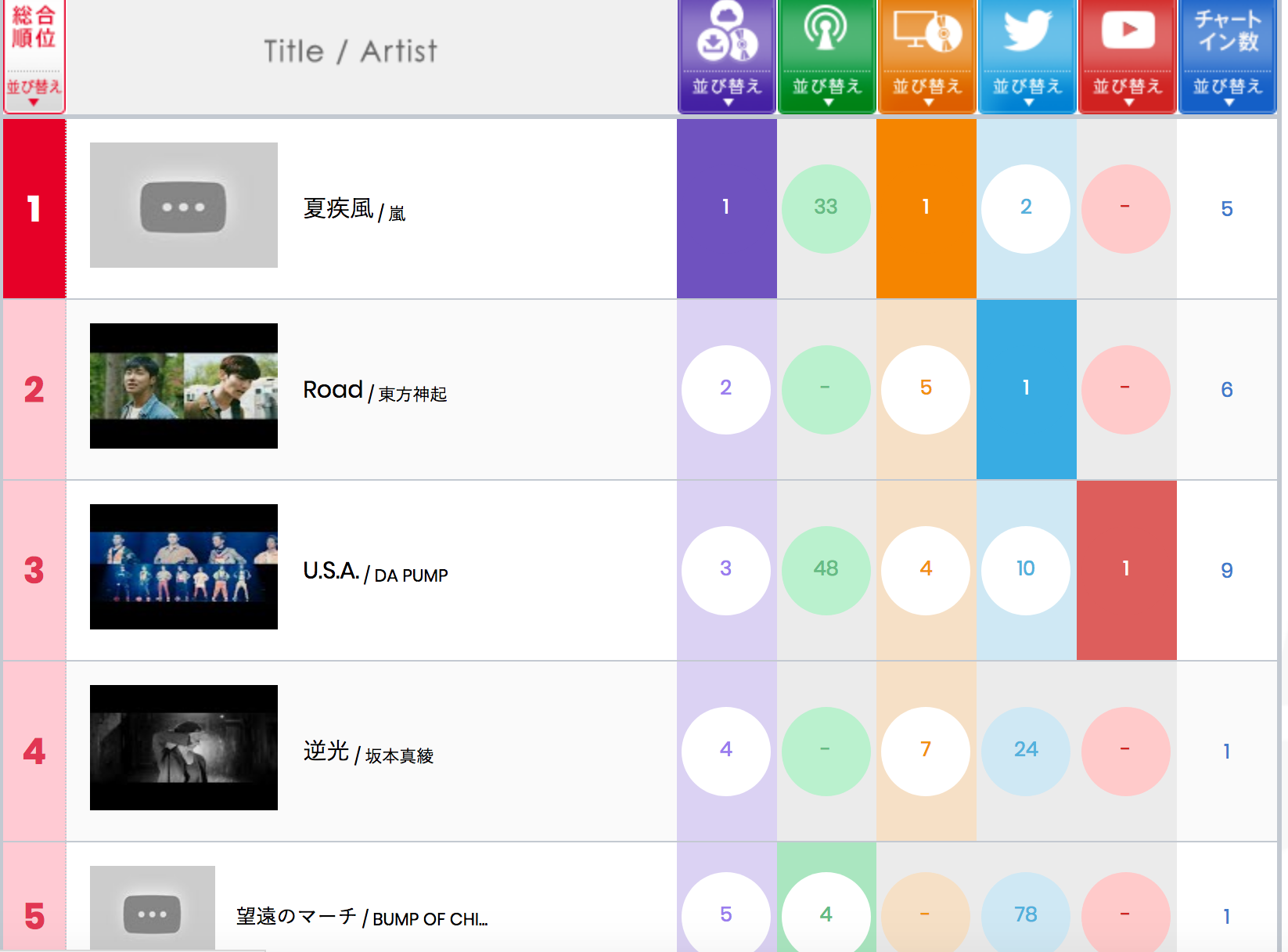 CDのパッケージセールスだけではなく、動画の再生回数、Twitterでつぶやかれた数。ルックアップと言って、CDがパソコンに取り込まれた回数など、あらゆる角度からチャートを分析して、オリジナルのチャートを生み出している、ビルボードジャパンチャート。