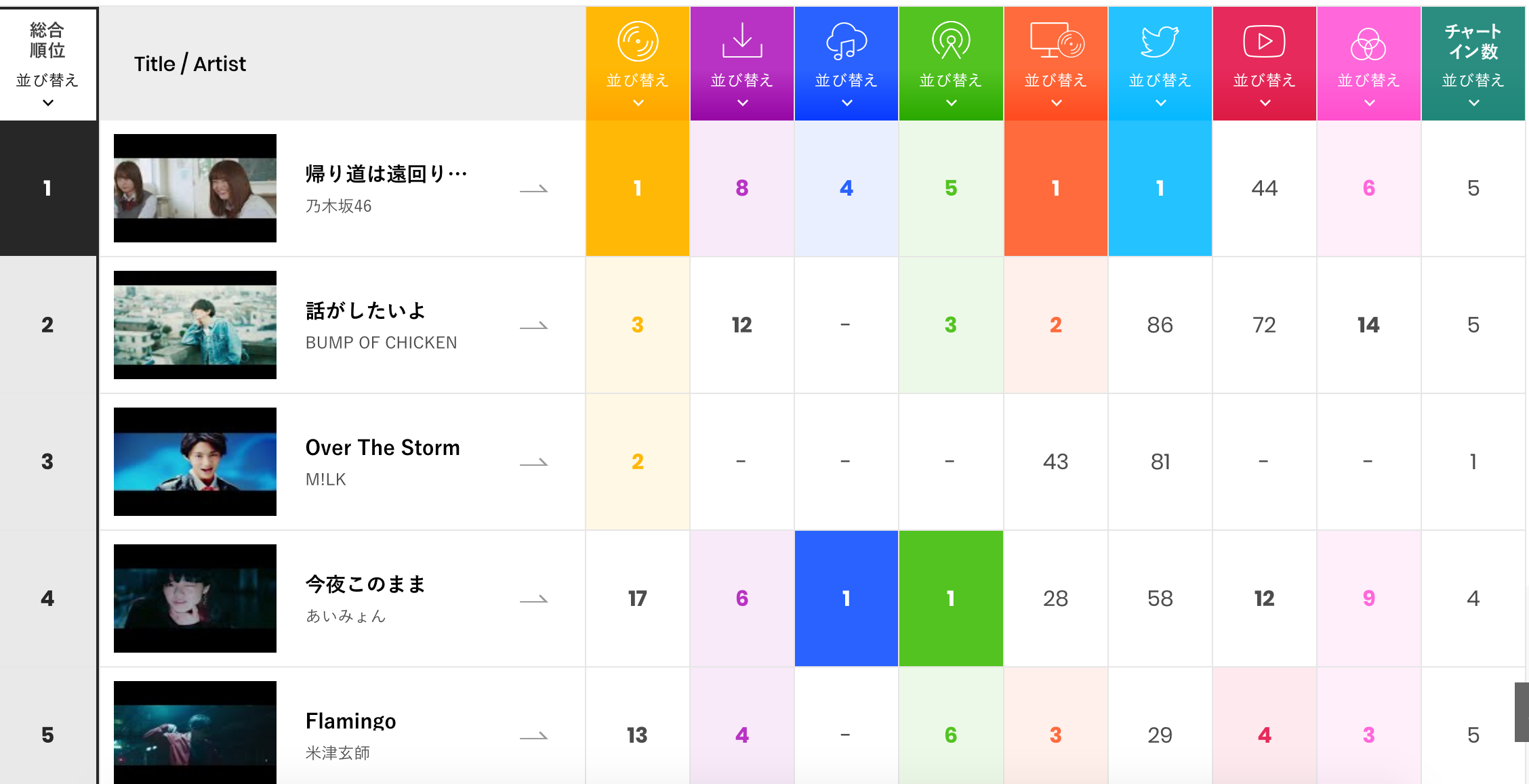 今週は乃木坂46「帰り道は遠回りしたくなる」が総合首位を獲得!