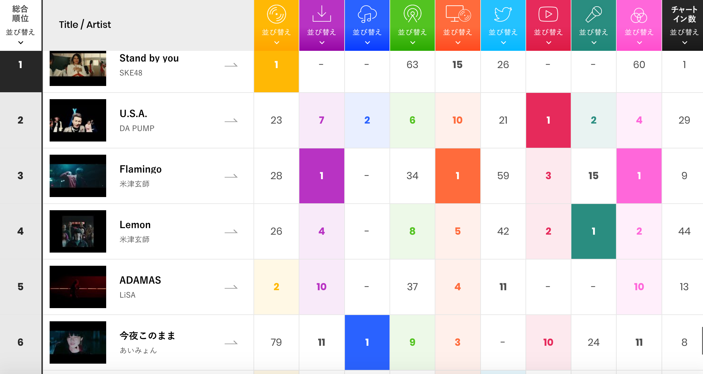 今週はSKE48「Stand by you」が総合首位を獲得!