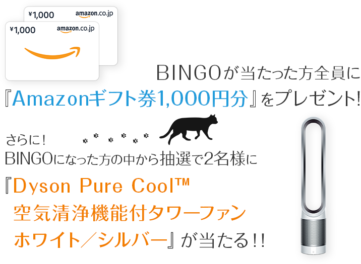 - ・縦・横・ナナメ、どれか1列揃うとBINGOとなり、賞品の当選となります。