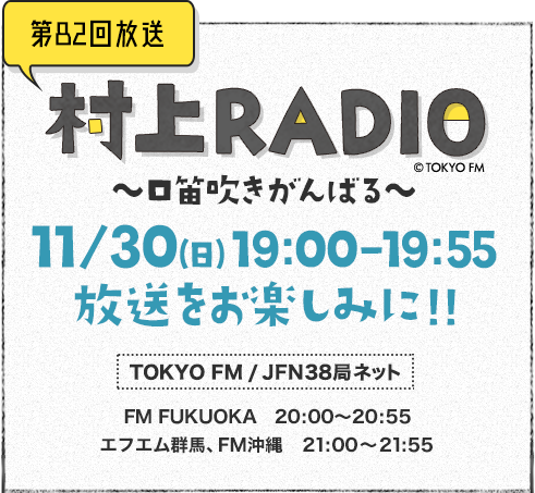口笛。国籍や老若男女問わず誰もが持っている楽器ですよね。そんな誰しもに身近で手軽なものが、これほど多様な曲に使われていたとは少し驚きました。レコーディングに立ち会ったら楽しそう♪ 私は最近ようやく音が鳴るようになったので、もう少し練習して早く吹けるようになりたいです。リスナーのみなさんは、口笛吹けますか?(「村上RADIO」スタジオ・チーム)