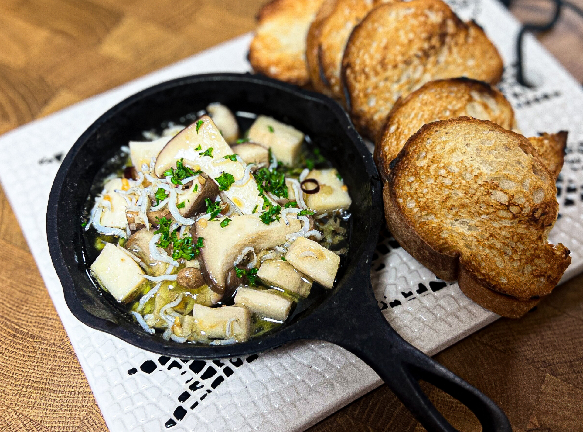 菌活で出来る“免疫力アップ”におすすめのきのこレシピを紹介!『エリンギとしらすのアヒージョ』