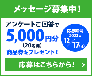 メッセージをいただいた方の中から、抽選で毎月5名様にQUOカード3,000円分をプレゼント!応募締切毎月月末
