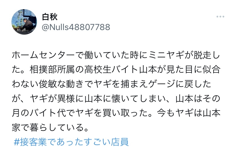 「白秋」さんの「山本くん」と「ヤギ」のエピソード🐐