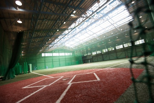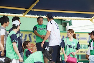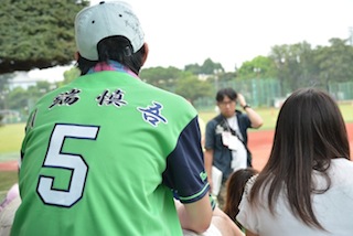いよいよ試合目前!やしろ本部長は、キャッチボールで肩を温めます。