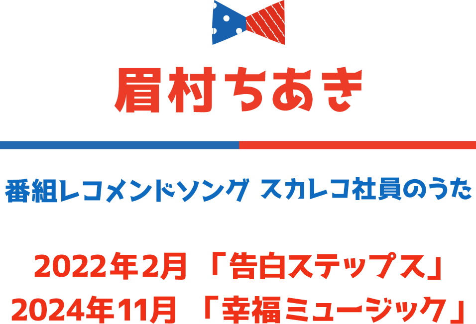「幸福ミュージック」。 「Roomie Roomie」放送前から交流のある若き天才シンガーソングライター、眉村ちあき。通称ちちゃん。子どものような純粋さと自由さを併せ持つ愛されキャラクター。予測不能でユーモアあふれるパフォーマンスは見る人を笑顔に!