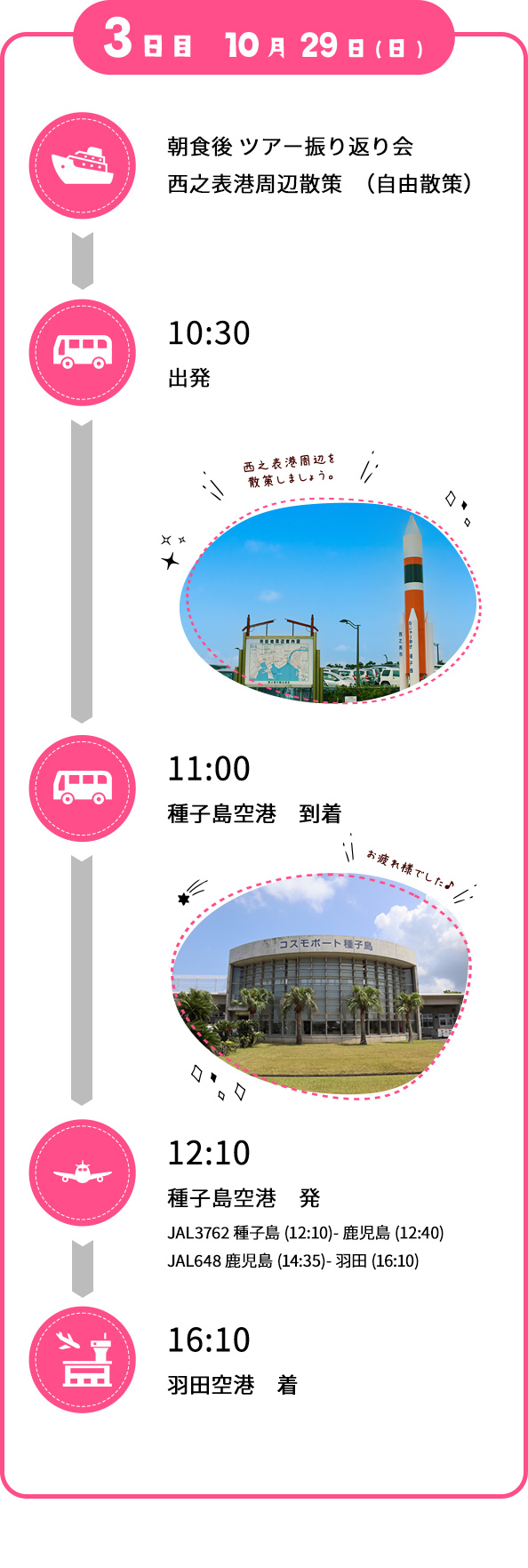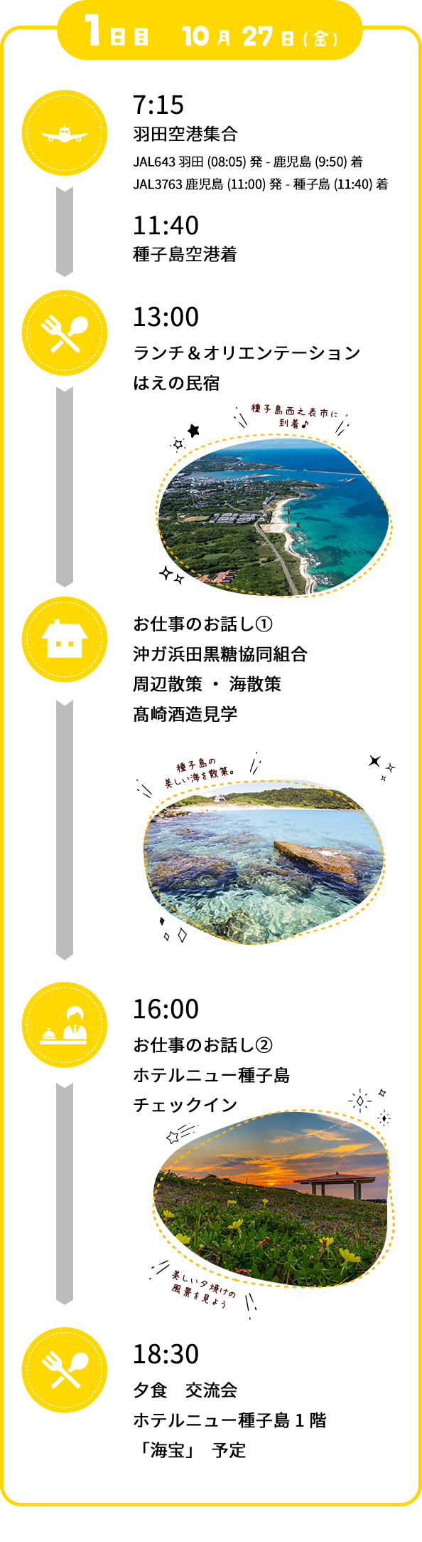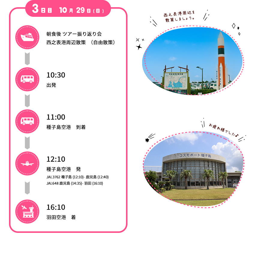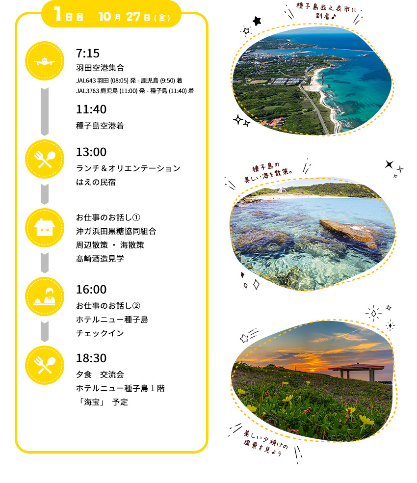 西之表市のHP、SNS、プレスリリース、資料等で発信させて頂きますことをご了承ください。 - ツアーの終了後、アンケートのご記入をお願い致します。