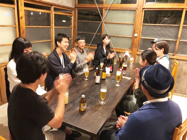 夜は、夏にオープンしたばかりの、ゲストハウス『Bar&stayYuzaka』で、交流会を実施。