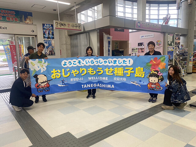 おじゃりもうせ種子島🏝️の横断幕と共に