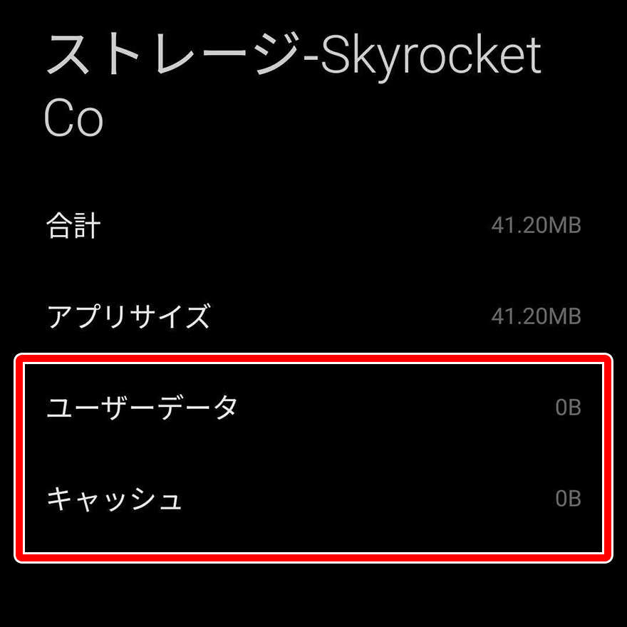 - ⑤ユーザーデータとキャッシュが0になれば大丈夫です。(キャッシュ消去のみでは改善しません。すべてのユーザーデータを消去してください。)