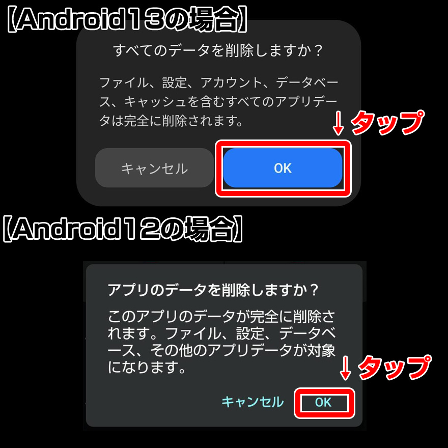 - ④「すべてのデータを削除しますか?」で「OK」をタップ