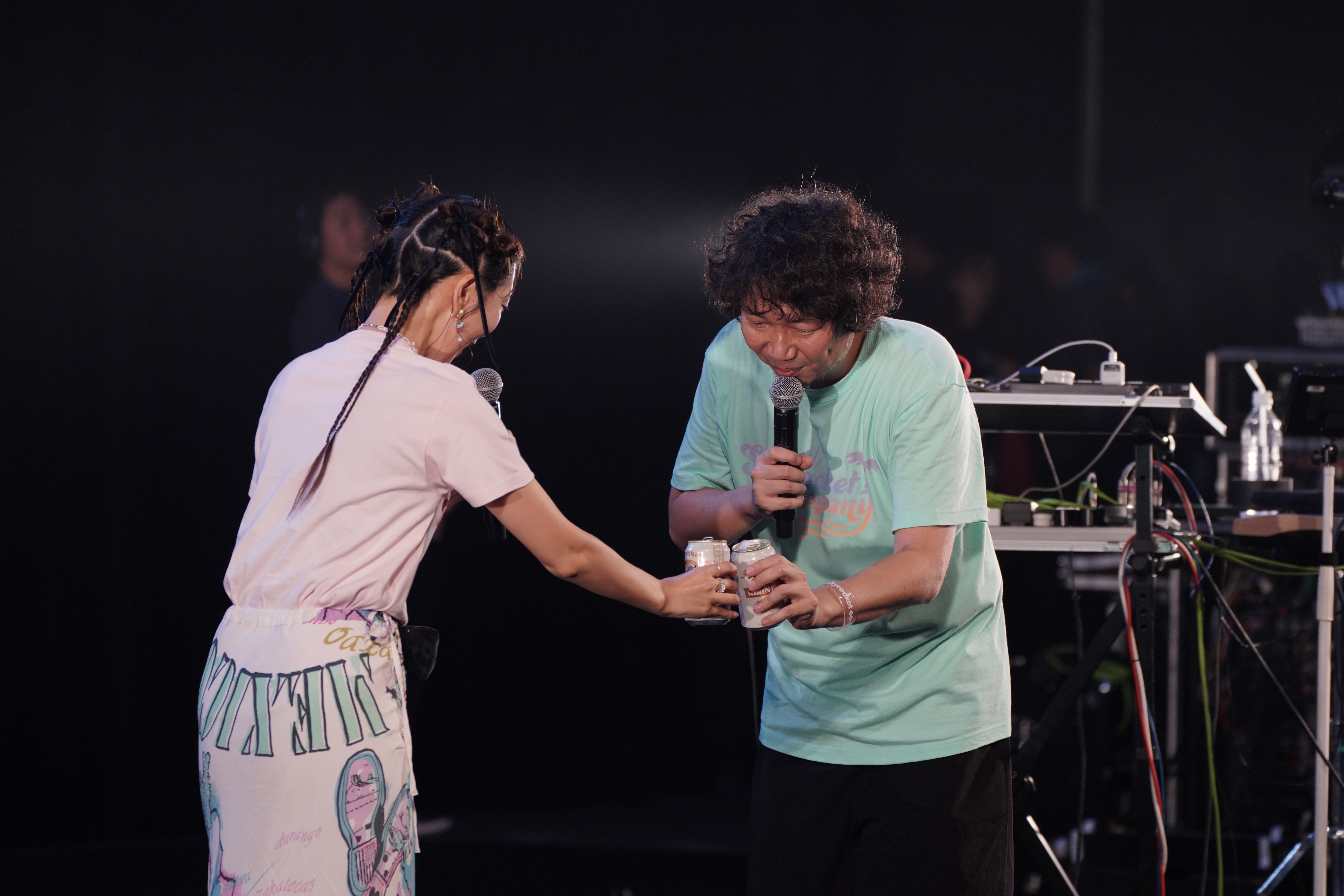 『アイライ』の間奏では、やしろ本部長が渾身のエアギターで参戦 ♪