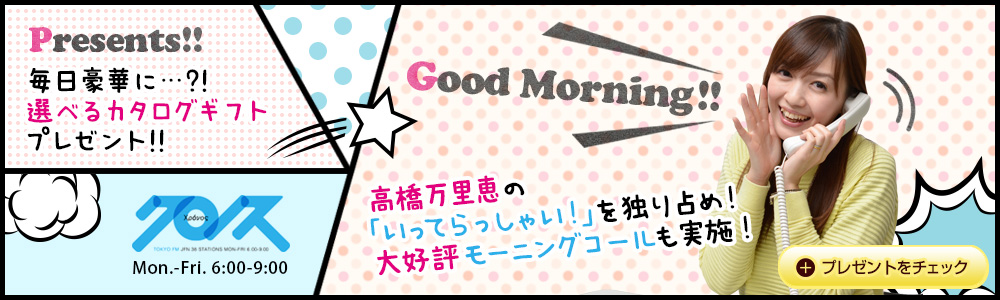 毎日豪華に…?! 選べるカタログギフトプレゼント!グルメからブランド、旅行まで選べる楽しみ!寒い冬も早起きするあなたに、高橋万里恵の「いってらっしゃい!」を独り占め!大好評モーニングコールも。