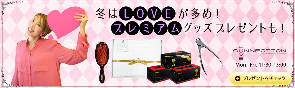 冬はLOVEが多め!プレミアムグッズプレゼントも!プレミアムな今治タオル、英国伝統の猪毛ヘアブラシ、爪切りの”ロールスロイス”、プレミアム枕、驚きのティシュー…ワンランク上の商品をあなたに!