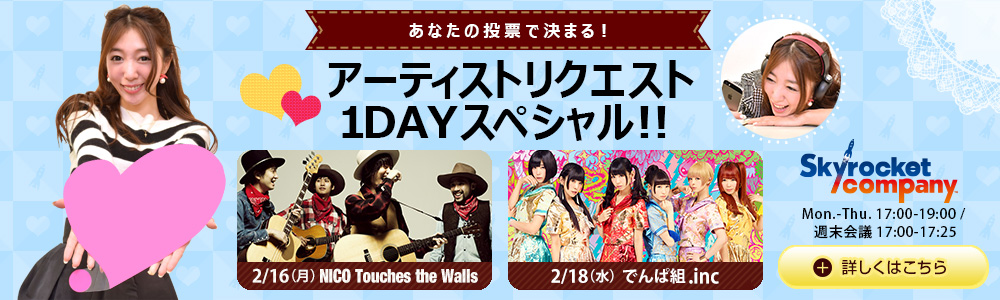 あなたの投票で決まる!アーティストリクエスト1DAYスペシャル!!NICO Touches The Walls、でんぱ組.incほかスペシャルゲストもスペイン坂に登場!