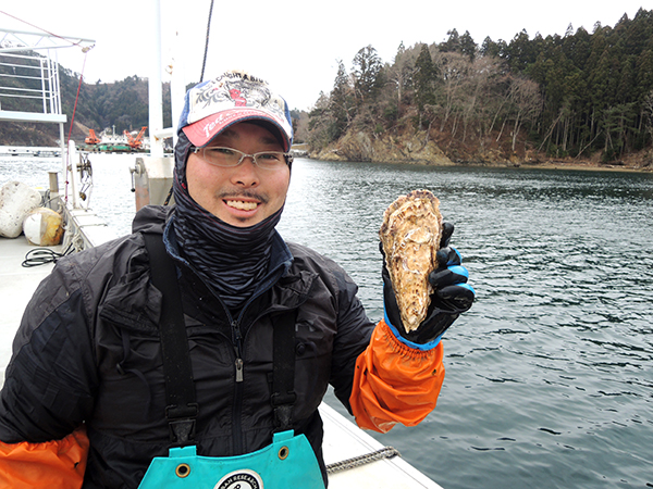 宮城県、気仙沼。翡翠色に輝く唐桑湾の大きな牡蠣を、いただきます!