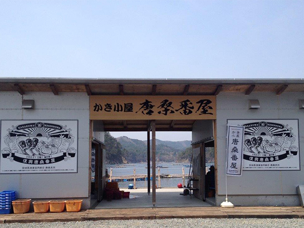宿舞根(しゅくもうね)漁港の一画にある、「カキ小屋 唐桑番屋」!