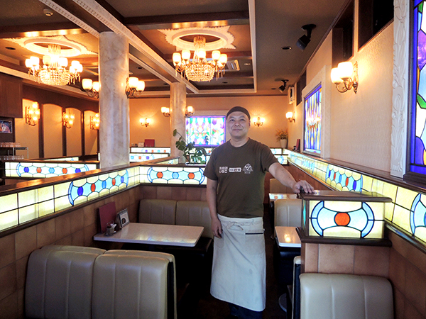 「喫茶店と名乗っていますが、ここは地元の人たちの食堂なんです。コーヒーも美味しいですが、ラーメンもチャーハンもどんぶり飯も美味しいんです」と語るのは、「喫茶マンボ」、その3代目、岩本秀之さん。お店のシェフでもあります。